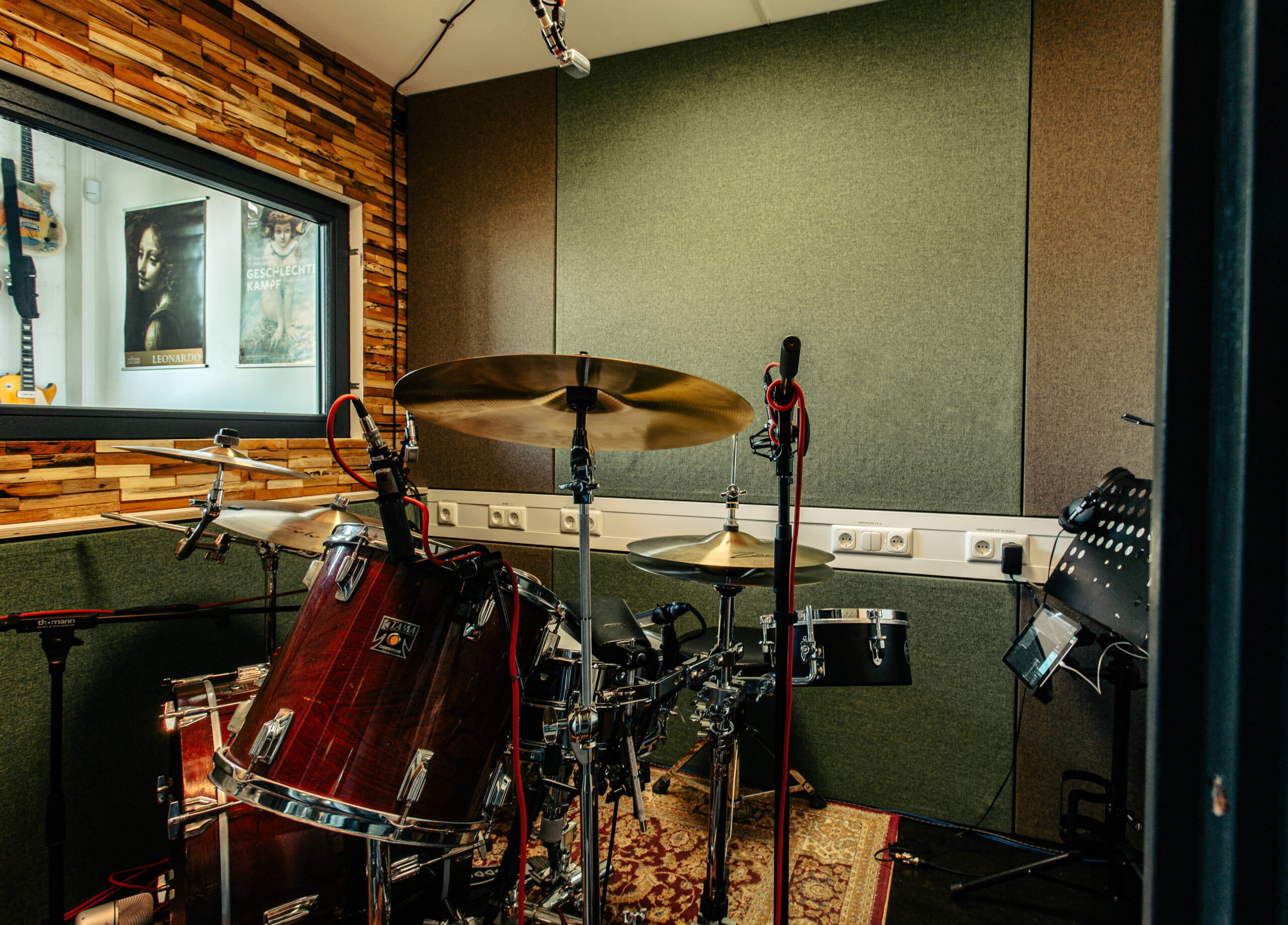 Für die Aufnahme von Schlagzeug, Bläsern oder Vocals steht unsere helle und vor allem wohlklingende Kabine bereit.